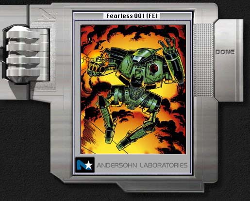 Fierce close combat fighting machine - a battling buzzsaw. This Protozoid had to undergo program correction to prevent self destruction in positive threat situations. It was so well programmed to be fearless, that it would discount it's own survivability as an option if it's possible destruction would bring about the quickest solution to a mission. ( We don't call him Fearless for nothin' ) Luckily this flaw became obvious in early training missions. The addition of the new logic circuitry keeps it from destroying itself to fulfill a mission objective, unless of course, it becomes necessary. Care should be taken around this one. It is made to be very agressive.