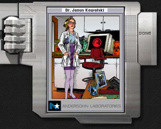 Having begun life as a child genius, she is the head of the Team Dragonfighters project at Andersohn Labs. Trained in martial arts and holding advanced degrees in all the sciences, Janus is one of the world's greatest scientists. She is responsible for bio engineering the Bioneers and creating the protozoid robot chassis. She has a 14 year old daughter, Rachel, who is a child prodigy, of course!